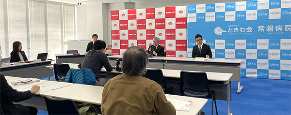 同日、本学いわきキャンパス16号館において記者会見を開催し、本学学長代行のGOH AH CHENG教授と、公益財団法人ときわ会 常磐病院 院長 新村浩明氏が会見に臨みました。