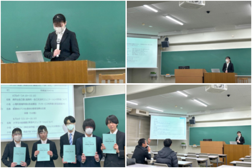 心理学部では、4年次に卒業研究が必修科目として位置づけられています。これまでの心理学の学びの集大成として、テーマの選別、データの収集や実験の実施、得られたデータの分析・考察といった活動を行い、12月20日に卒業論文としてまとめ、提出しました。その内容をもとに、1月下旬には分野・ゼミごとに分かれて、2025年度卒業研究発表会を実施しました。