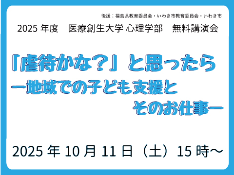 ニュース2025/10/15【心理学部】学部講演会『虐待かな、と思ったら…』