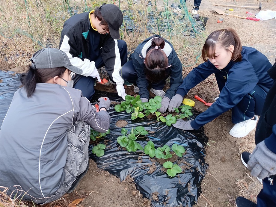 キャンパスレポート2025/11/14【作業療法学科】園芸療法の授業で野菜の苗と種を植えました!!イチゴの苗も植えましたよ(^^♪ -