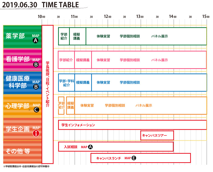 - 10:30- 学部紹介、模擬講義、体験実習、個別相談