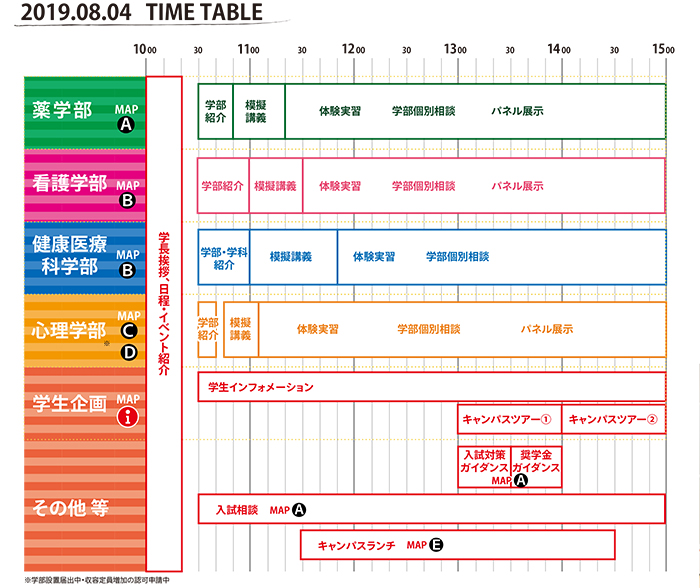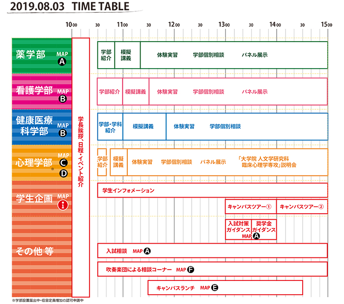 - 10:30- 学部紹介、模擬講義、体験実習、個別相談
