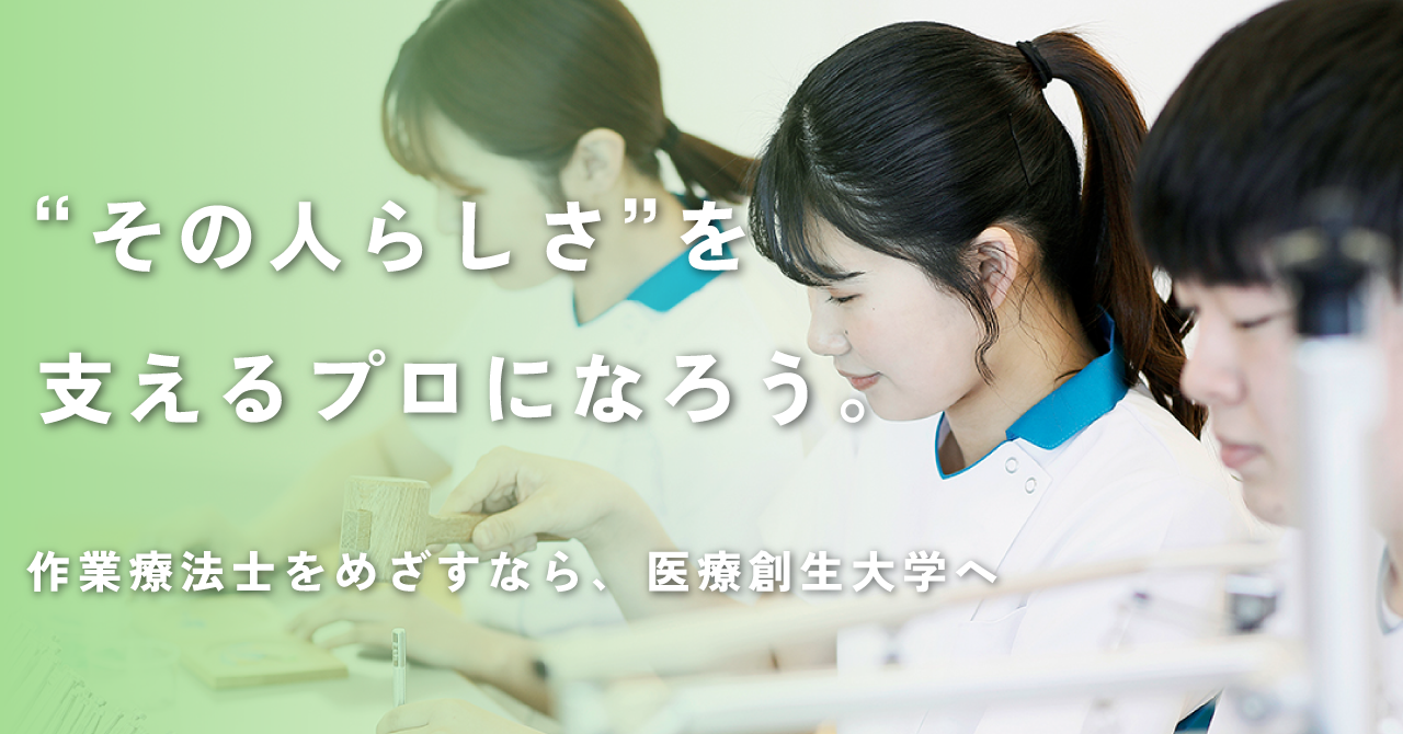 あなたの「作業療法士になりたい」という想いを、医療創生大学作業療法学科が全力でサポートします。一緒に"一生モノ"の資格と「人を支える喜び」を手に入れましょう!