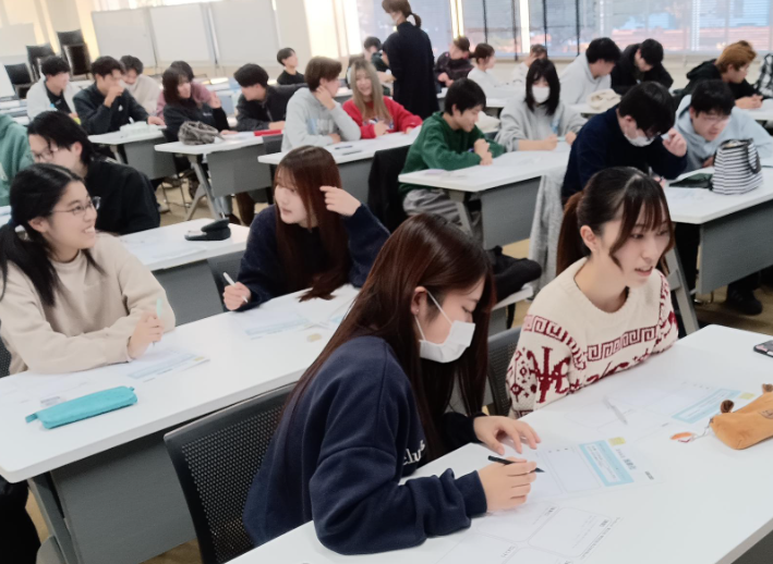 ワークが進むにつれて、笑顔で意見を交わしたり、相手の良いところを言葉にして伝え合ったりする姿が印象的でした。医療系の学びをスタートしたばかりの1年生にとって、「伝える力」と「聴く力」の大切さをあらためて考える機会となったようです。