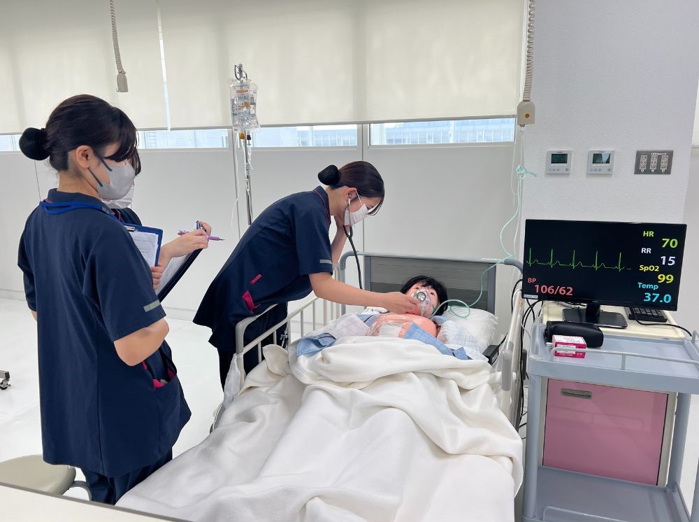 看護学科では、2年生からより実践的な学びがスタートします。成人看護学演習第2弾では「術直後の観察」と「離床の援助」に挑戦しました。手術を終えた患者さんは、ちょっとした体調の変化が大きなサインとなることもあります。