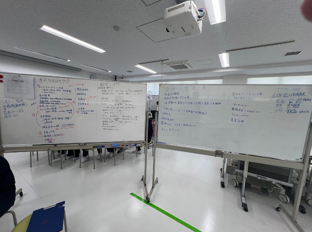 学生たちはバイタルサインや創部の確認、意識状態の観察を行いながら、患者さんを安全に離床へ導く援助を経験しました。ベッドからの起き上がりや歩行の介助では、声かけや支え方ひとつで安心感が変わることを改めて実感しました。教科書で学んだ知識が、実際の“看護の力”に変わる瞬間です。