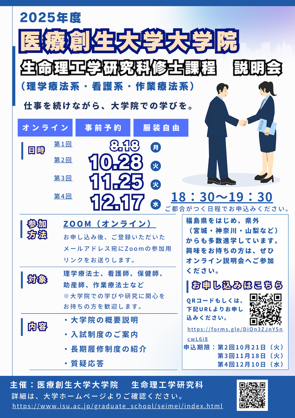 現在、定期的に大学院説明会も開催中です。興味をお持ちの方は、是非ともご参加ください。