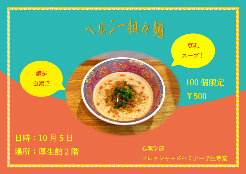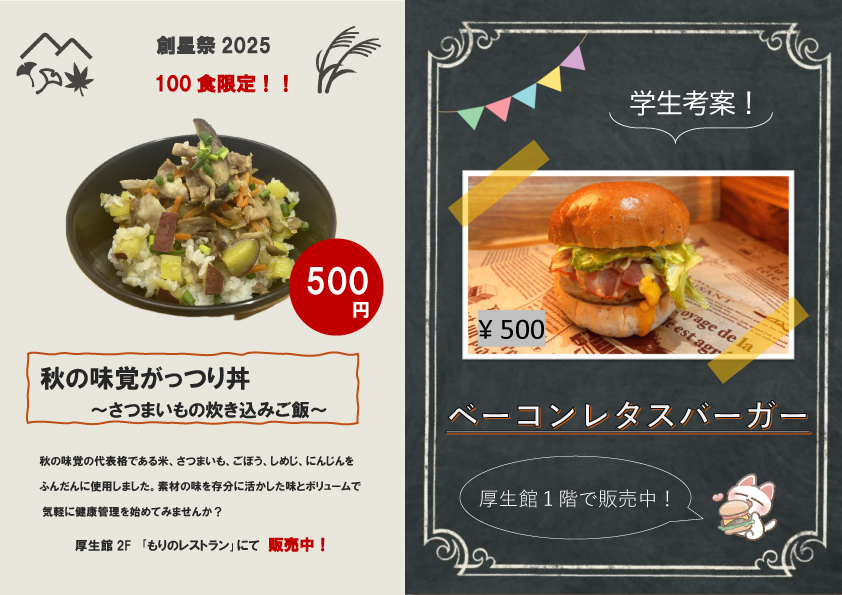 当日の様子と出来上がったポスター・ビラ(もちろんこちらも学生の作成)は写真の通りです。創星祭にいらした際には是非、ご賞味ください。※