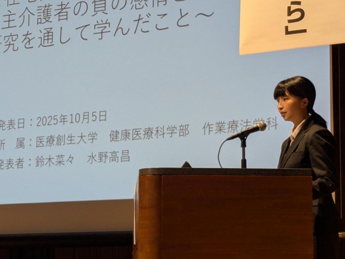 今まで大学で学んだことの成果として、学会という素晴らしい舞台で発表することができました。入学してから4年間で成長されましたね。