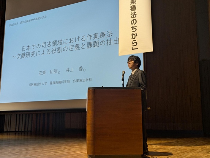 10月5日、第36回福島県作業療法学会で研究成果を作業療法学科4年生5名と水野高昌(作業療法学科長)が発表しましたことを、報告いたします。学園祭が行われた日と同じ日でした。