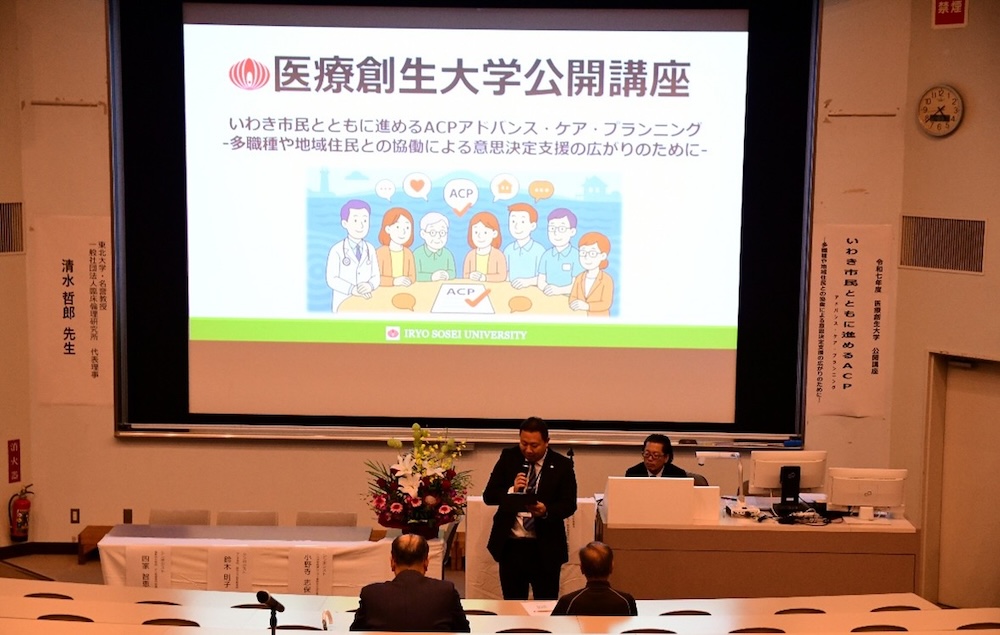 2025年10月11日(土)、医療創生大学いわきキャンパス AV大講義室において、2025年度 医療創生大学公開講座「いわき市民とともに進めるACP(アドバンス・ケア・プランニング)― 多職種や地域住民との協働による意思決定支援の広がりのために ―」を開催しました。