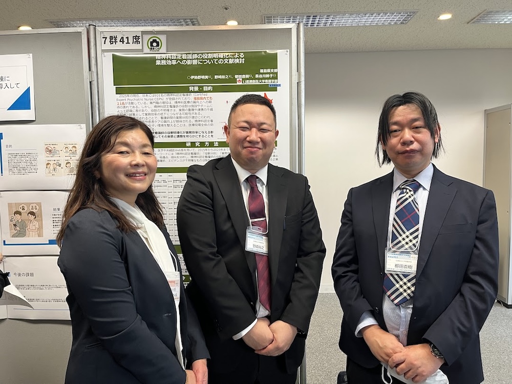 3題の発表はいずれも、精神科看護における実践、制度、教育の三位一体的な発展をめざすものであり、本学が掲げる「地域に根ざした看護教育および研究の理念」を体現する成果です。