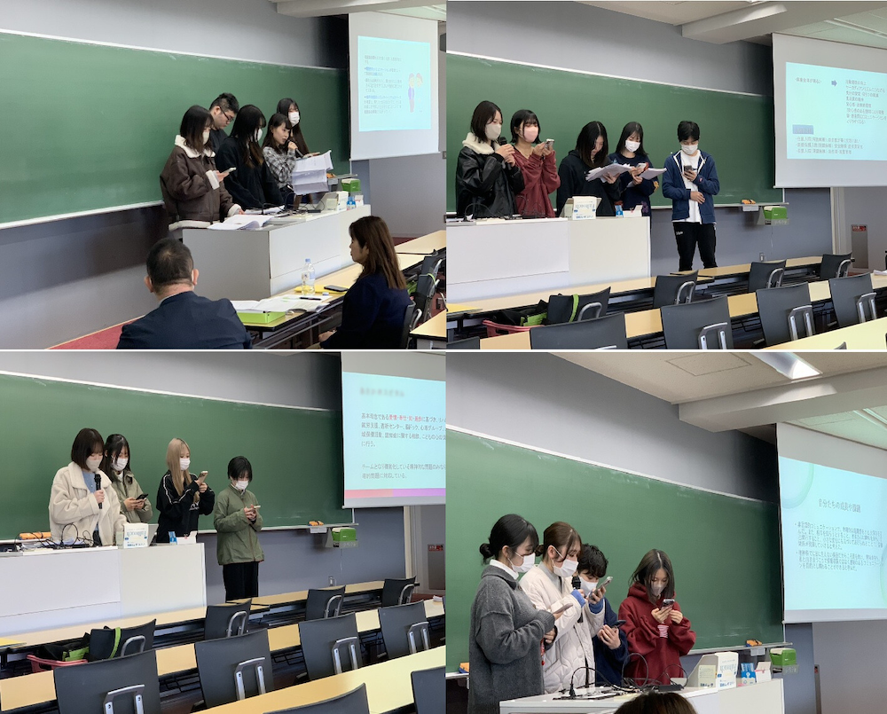 精神科病院での実習では、患者さんの症状や治療経過だけでなく、その人がこれまで歩んできた生活や背景を理解することの重要性を学びました。学生からは、安心・安全を確保しながら信頼関係を築く関わりの難しさや、患者さんの尊厳を大切にした看護のあり方についての気づきが多く発表されました。