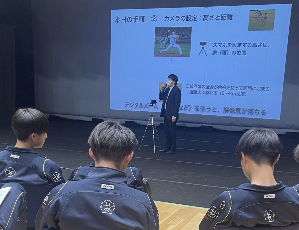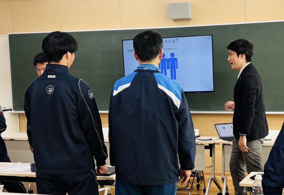 高校生の皆さんは、すでに探究学習のテーマとして「スプリント力の向上」や「走行中の関節運動」など、スポーツ動作を科学的に理解することを設定しており、講義内容に強い関心を示していました。