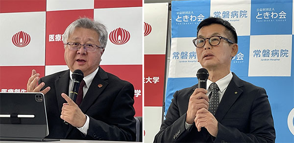 同日、本学いわきキャンパス16号館において記者会見を開催し、本学学長代行のGOH AH CHENG教授と、公益財団法人ときわ会 常磐病院 院長 新村浩明氏が会見に臨みました。