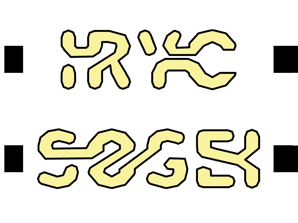 例えば上の図形、何が見えるでしょうか?左右にある黒い線分を引き延ばしてみると、文字が見えてきます(正解はこの記事の一番下に)。すべてが見える方がよく見えると思うかもしれませんが、隠してあげることで、意味のある対象がよりはっきりと見えてくることもあります。“アモーダル知覚”といわれる現象です。隠されているところをどのように補ってかたちを見ているのか、そこにはきちんとルールがあります。かたち以外にも、奥行きや色などの知覚においても、私たちは視覚システムのルールに従って、世界を見ています。