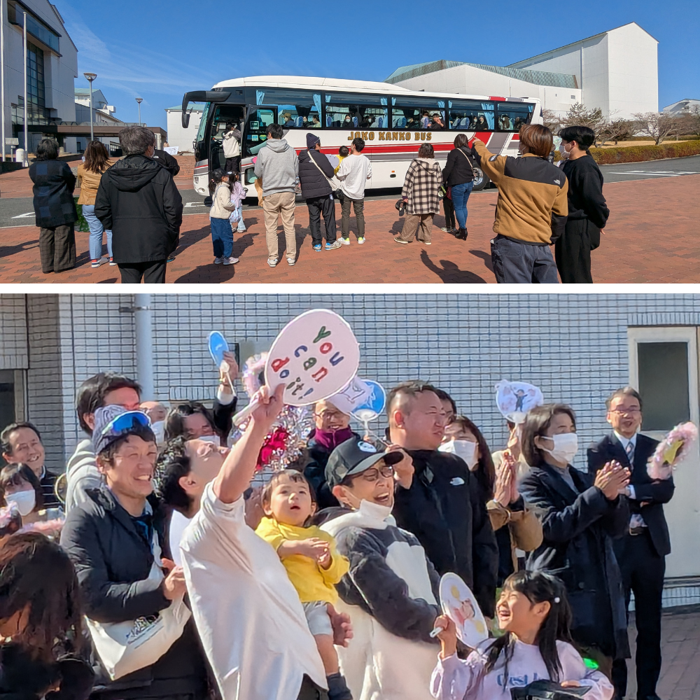 <後輩たち、教職員一同で、皆さんが全力を出し切れるように見送りました>