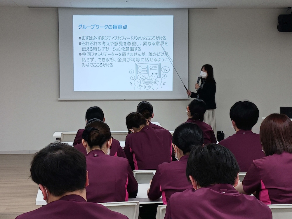 本研修では、医療現場における円滑なチーム連携や、患者との信頼関係構築に不可欠な「アサーティブな自己表現」について、理論的背景の理解とともに、演習を交えながら実践的に学びました。