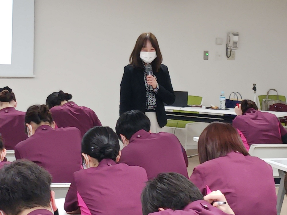 看護学部看護学科では、地域医療機関との連携のもと、現任教育支援にも積極的に取り組んでおります。このたび、いわき市医療センターにおいて実施されたラダーⅡ研修にて、本学看護学部長の長谷川幹子教授が「アサーティブコミュニケーション」をテーマに講義を担当いたしました。