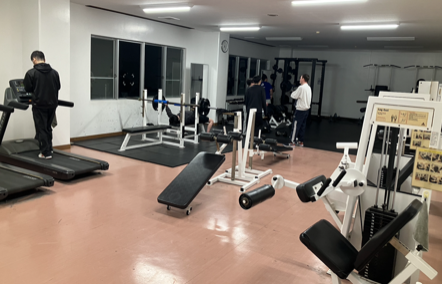 体育館には学生が普段使いできるジムスペースがあり、ベンチプレスやバーベルはもちろん、主要な筋肉を鍛えるメインマシンがひと通り揃っています!!だから、目的に合わせてトレーニングしやすい!!