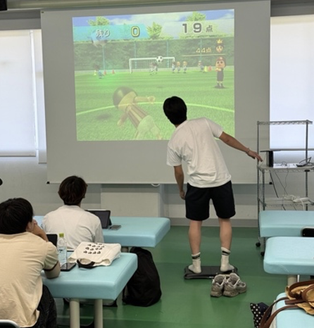 よりバランスについて視覚的にも体現できるよう、家庭用ゲーム機 Wii のバランスボードを活用し、バランス機能のチェックを実施しました。