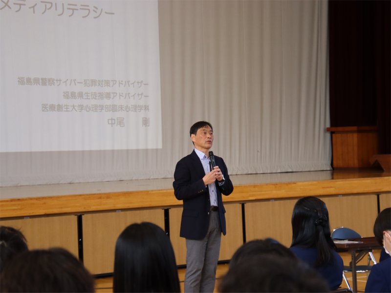 宮城県石巻西高等学校で開催された情報モラル特別講座で、心理学部 中尾 剛 教授が、「情報モラルとメディアリテラシー」と題して講演を行いました。
