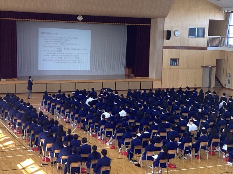 春休みの登校日に合わせて実施された特別講座に、同校約320名の1,2年生のみなさんと多くの先生方が熱心に聴講されていました。